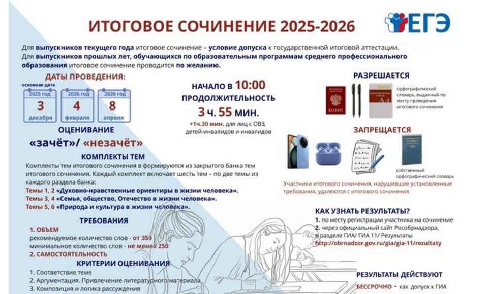 В 2025-2026 учебном году комплекты тем итогового сочинения формируются из ежегодно пополняемого закрытого банка тем итогового сочинения.